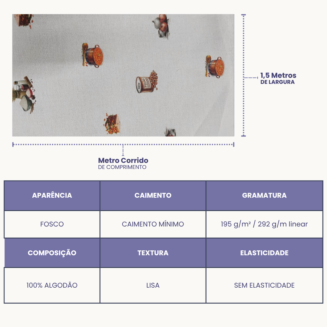 Possui largura de 70 cm e gramatura de 219 g/m², ideal para quem busca qualidade profissional em panos de prato, patchwork, toalhas de chá, apliques e mais. Versatilidade e qualidade para dar vida às suas criações!