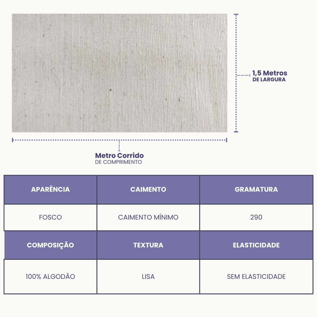 O Cotton Linen 484 é um tecido nobre com composição de 80% algodão e 20% linho, ideal para quem busca qualidade, resistência e sofisticação. Com 1,50m de largura e gramatura de 195 g/m², ele é perfeito para artesanato, costura criativa, roupas leves e projetos de decoração.