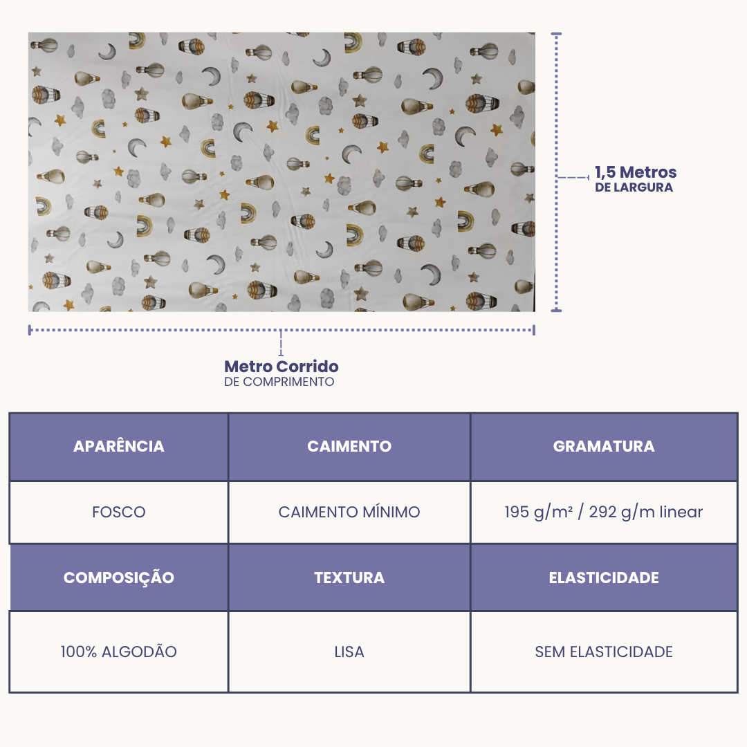 Perfeito para costura criativa, enxovais infantis, patchwork e decoração, com o toque macio e natural que só o algodão puro oferece.