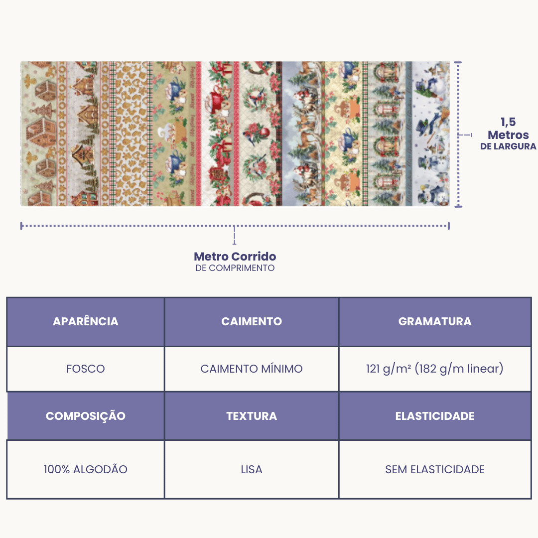A Coleção Natal 2024 oferece estampas temáticas em versões digitais e rotativas, perfeitas para dar vida a projetos natalinos. Feitas 100% em algodão, as estampas garantem alta qualidade e versatilidade, ideais para confeccionar peças decorativas e acessórios festivos. Traga o espírito do Natal para suas criações com esta coleção exclusiva.