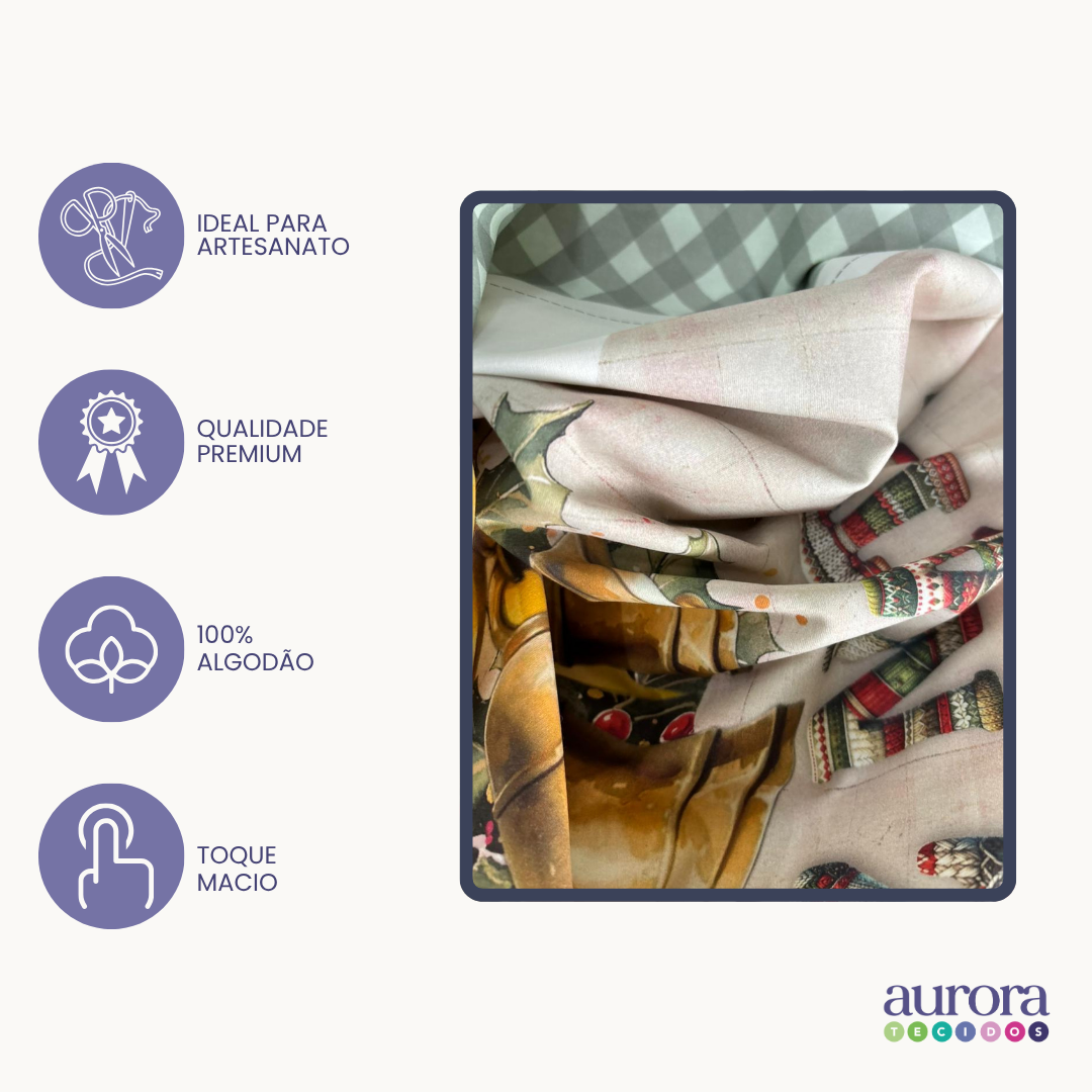 Tricoline Digital 100% Algodão - Coleção Natal Encantado - Molde Avental