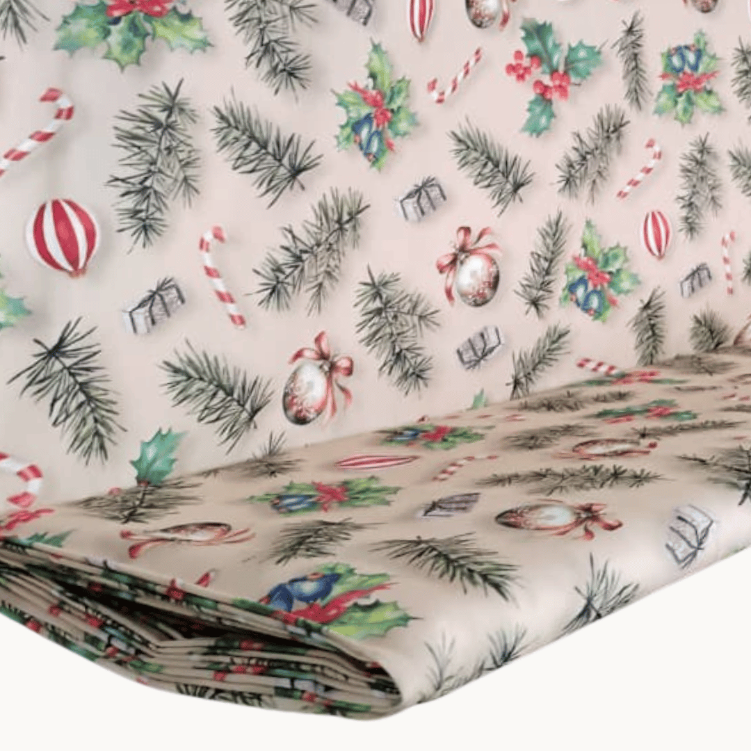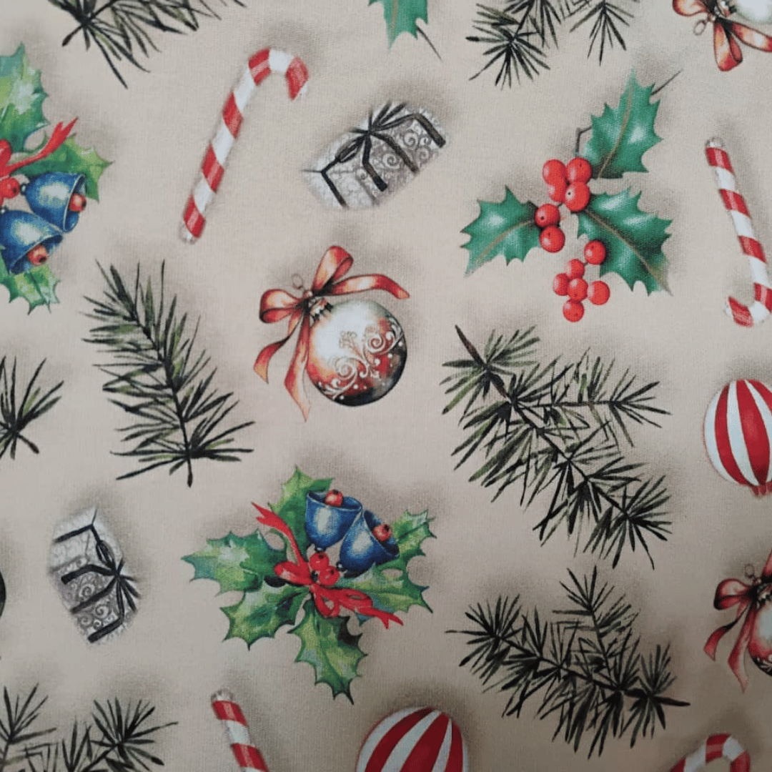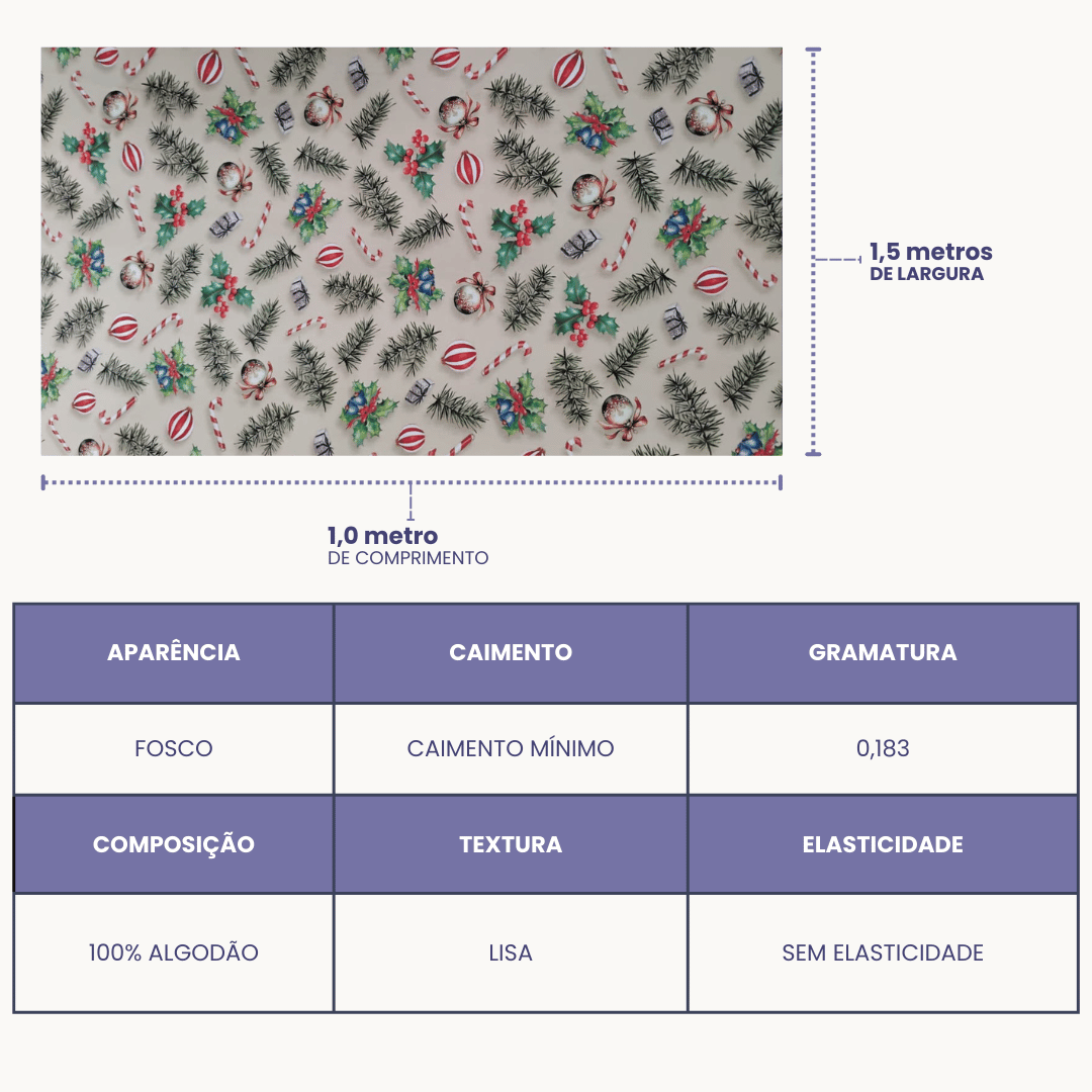 Tricoline Digital 100% Algodão - Coleção Natal - Estampa Enfeites de Natal