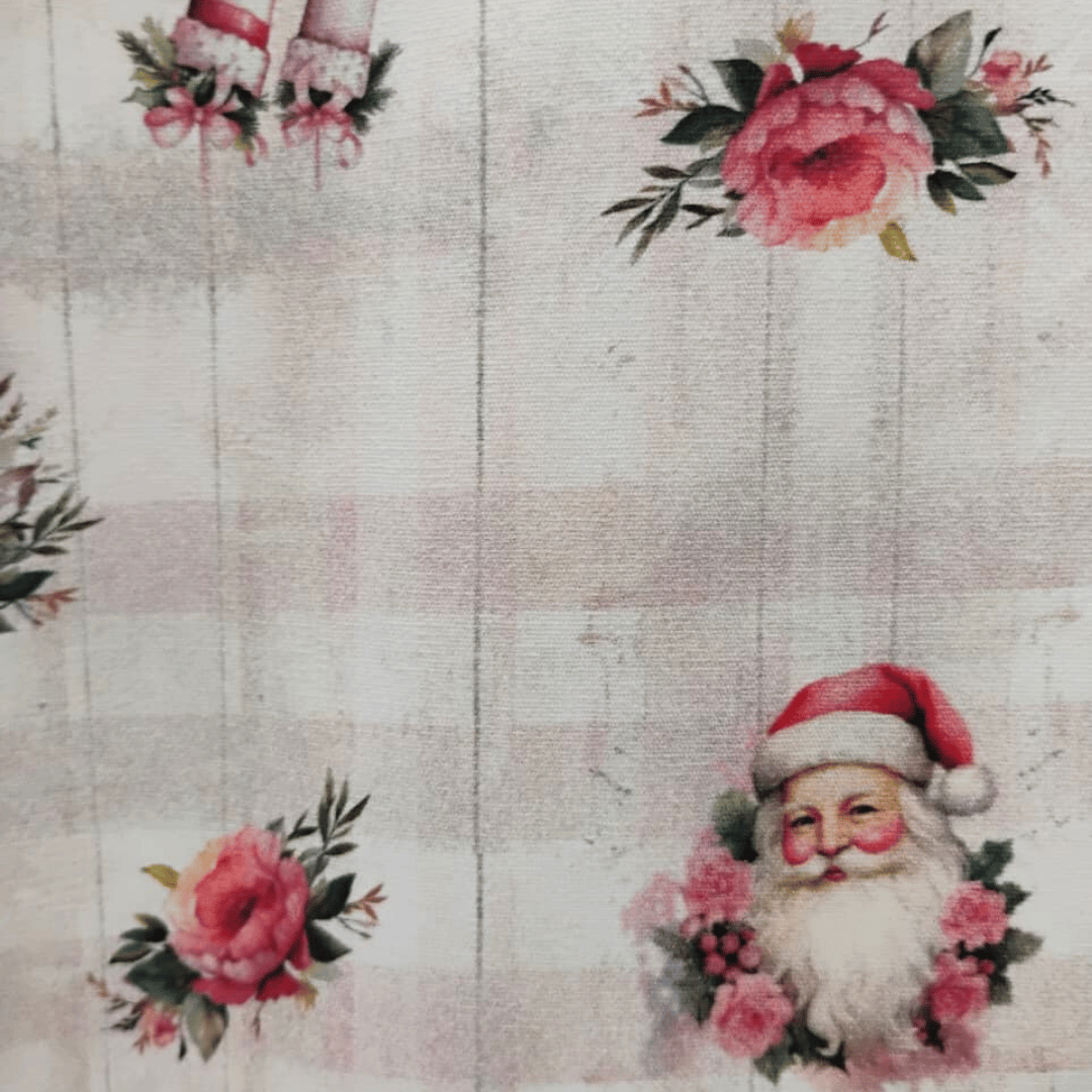 Encante-se com a delicadeza e o charme da Tricoline Digital 100% Algodão - Estampa Papai Noel Florido, parte da nossa exclusiva Coleção Natal. Essa estampa une o clássico e querido Papai Noel com um toque floral suave e elegante, criando um visual único, delicado e acolhedor para os seus projetos natalinos.