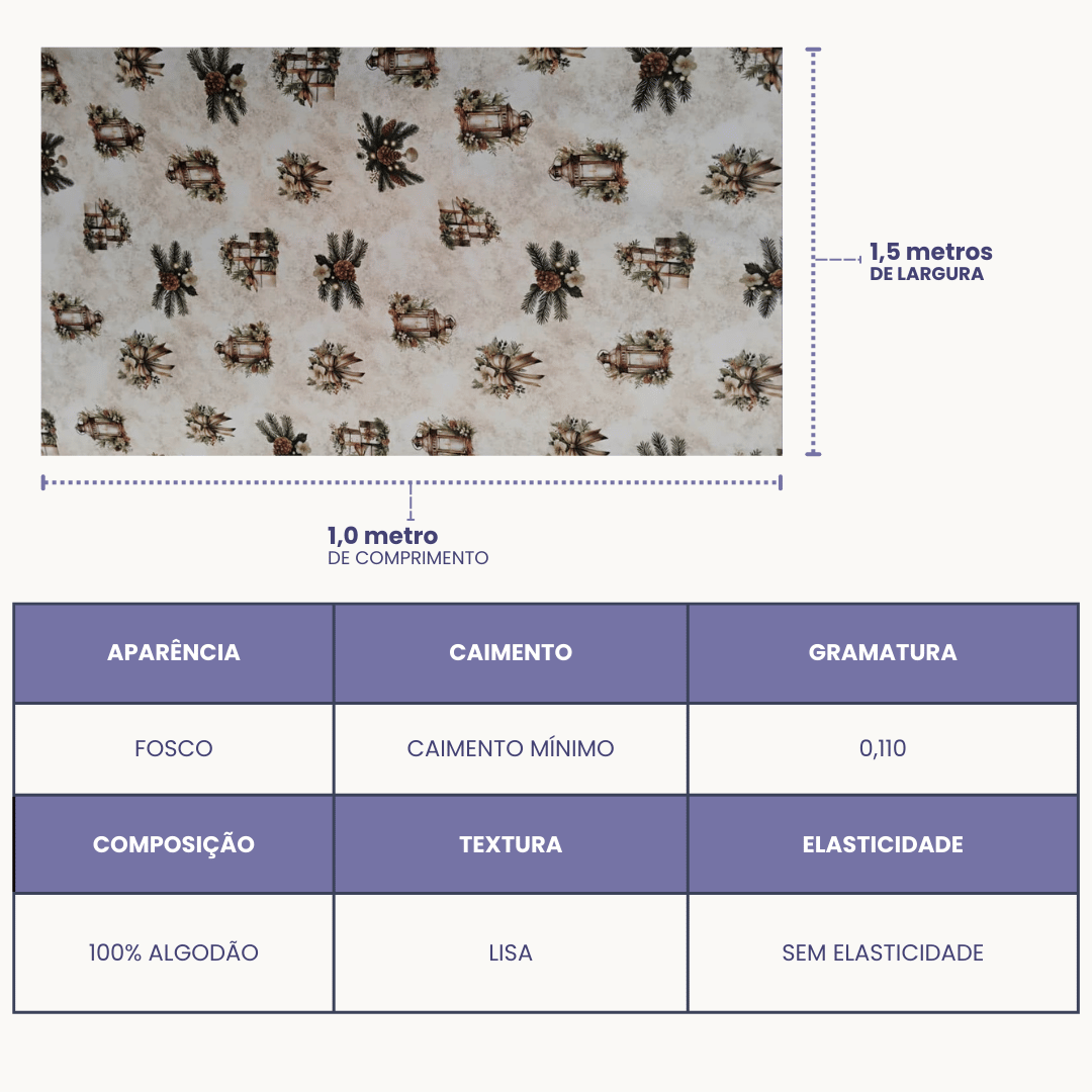Tricoline Digital 100% Algodão - Coleção Natal - Estampa Presentes do Noel