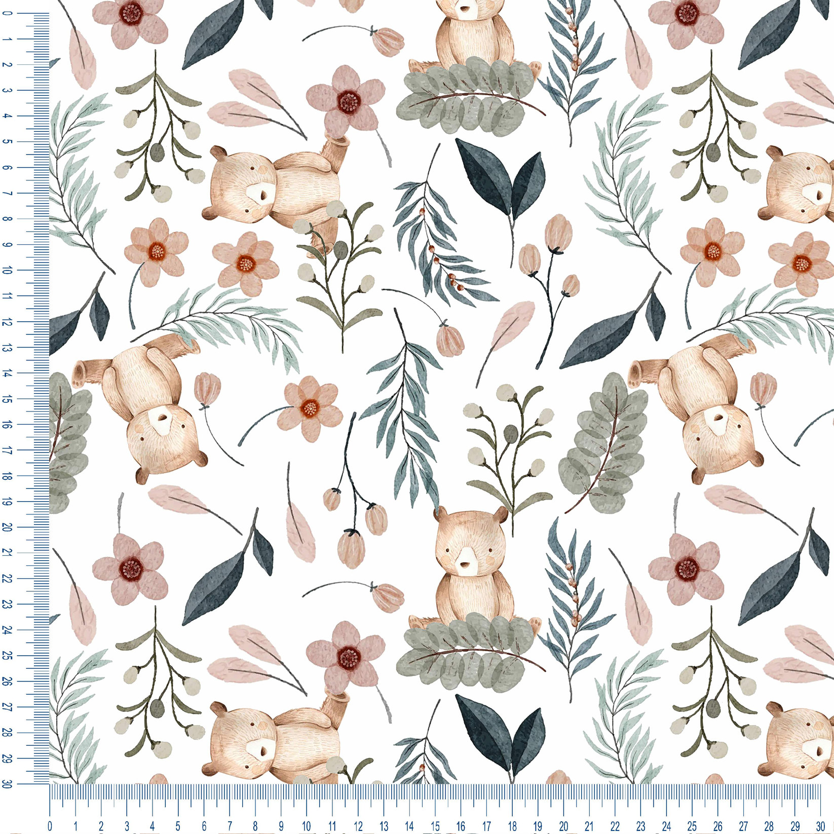 Você esta vendo o produto: "Tricoline Digital 170 fios - Ursinho e folhagens Entardecer"